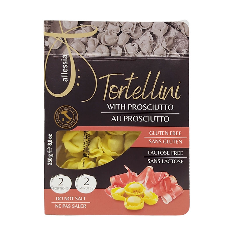 Experience the true flavor of Italy with Allessia Tortellini. Crafted in Italy, this gluten-free option promises a delicious and guilt-free dining experience. Enjoy the savory taste of prosciutto in every mouthful.