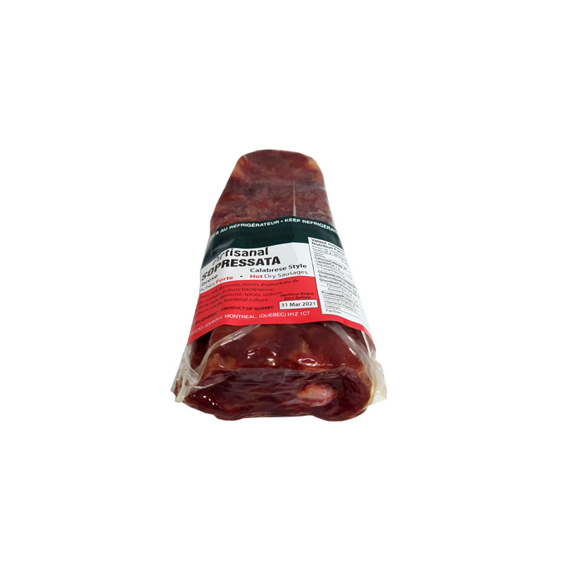 The Calabrian Sopressata is made using lean pork meat and Calabrian red chili pepper. A perfect addition to any Cheese or Salumi board at any time of year! ** Weights may vary per unit. **