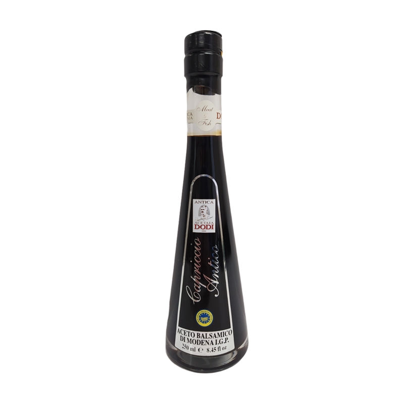 Capriccio Antico is aged for eight years, resulting in greater sweetness, mellow acidity and complex flavors imparted by the wood. This delicate balance is ideal for finishing meats, seafood, roast vegetables and for inclusion in marinades and sauces. Capriccio Antico's sophisticated flavors will take your favorite foods to the next level.