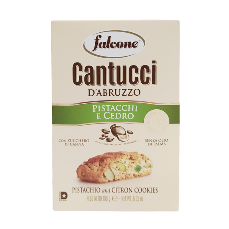 Fragrant biscuits from the Italian confectionery tradition, produced with selected and quality ingredients, enriched with chopped pistachios and candied lemon.