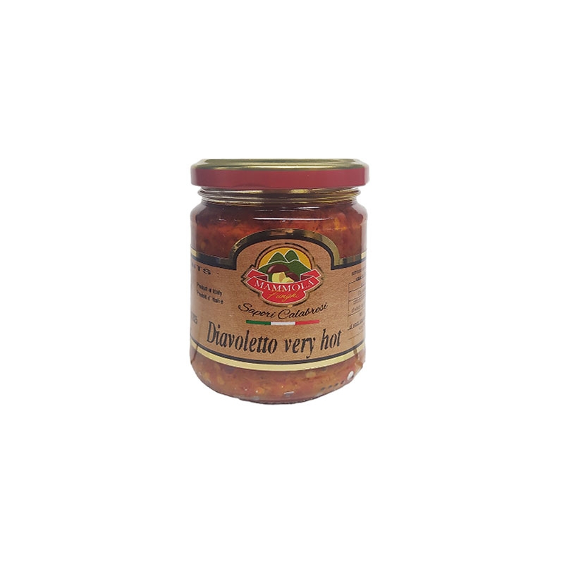 Diavolo is a type of Calabrian chili pepper, small in size but very spicy and flavorful. It is ground and jarred for spreading or flavoring your dishes.