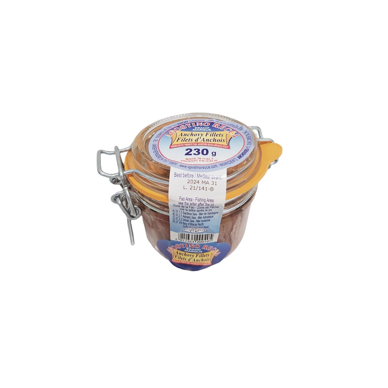 Agostino Recca Anchovies are Sicilian anchovies from Italy. Anchovies are excellent for pizza, sandwiches, pasta, salads, meat flavoring, and many other Italian recipes. These Italian anchovies are packed in olive oil to preserve the fresh flavor and texture. Use Agostino Recca Anchovies for lunch, snacks, and dinner dishes.