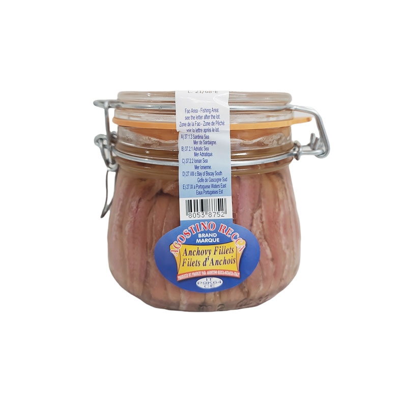 Agostino Recca anchovies are Sicilian anchovies from Italy. Anchovies are excellent for pizzas, sandwiches, pasta, salads, to flavor meat and many other Italian recipes. These Italian anchovies are packed in olive oil to preserve their fresh taste and texture. Use Agostino Recca anchovies for your lunches, snacks and dinners.